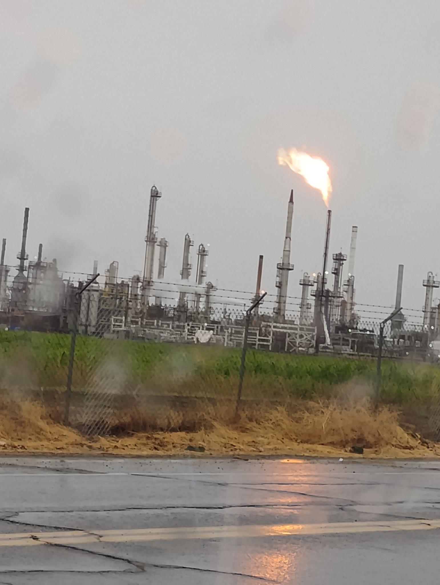The refinery close to Lamont has a tall fire, it is much taller than usual. You can see it in town from a few miles away.